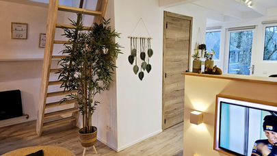 Een smaakvol gerenoveerde 5-persoonschalet, wat dieper gelegen in het bos,